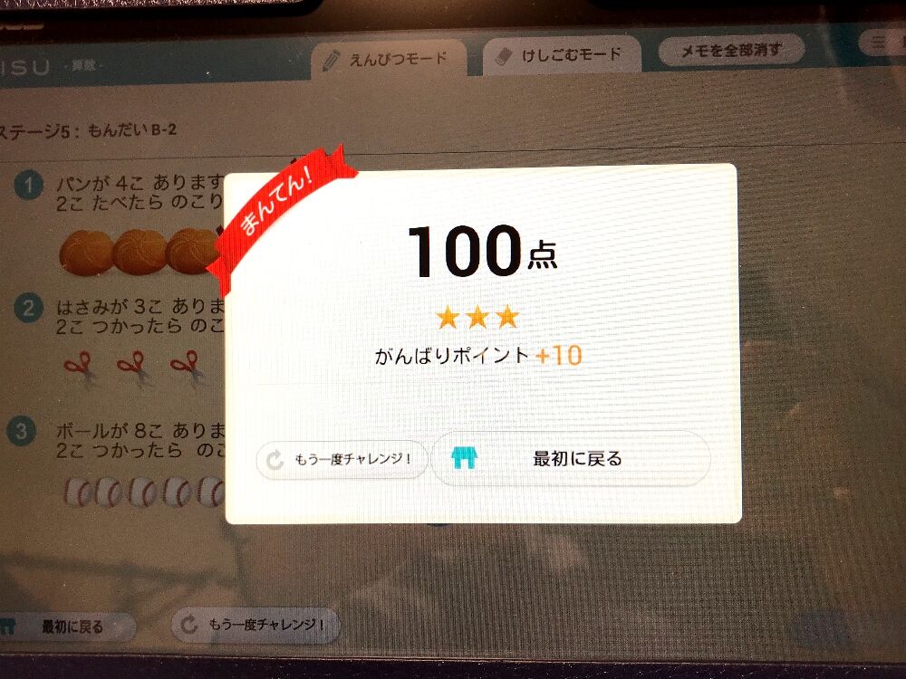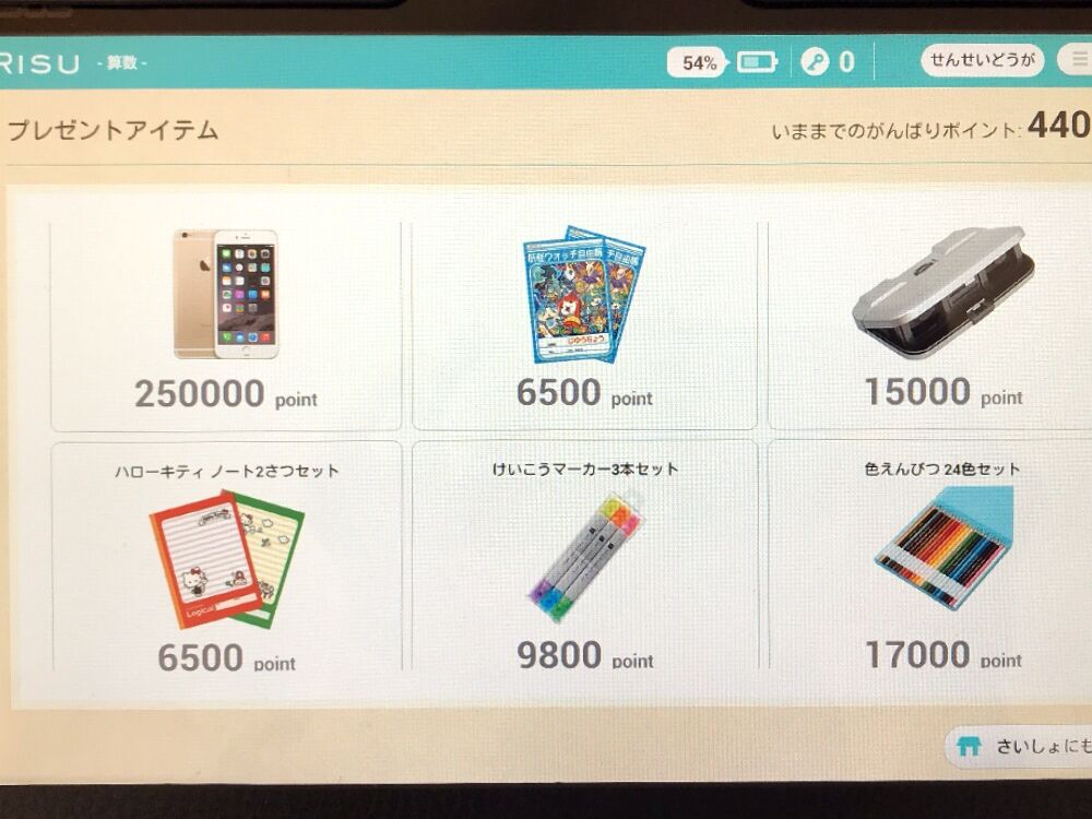 長男は妖怪ウォッチのノートセットが欲しいらしく「あと〇〇ポイント〜!」と張り切って学習を続けています。