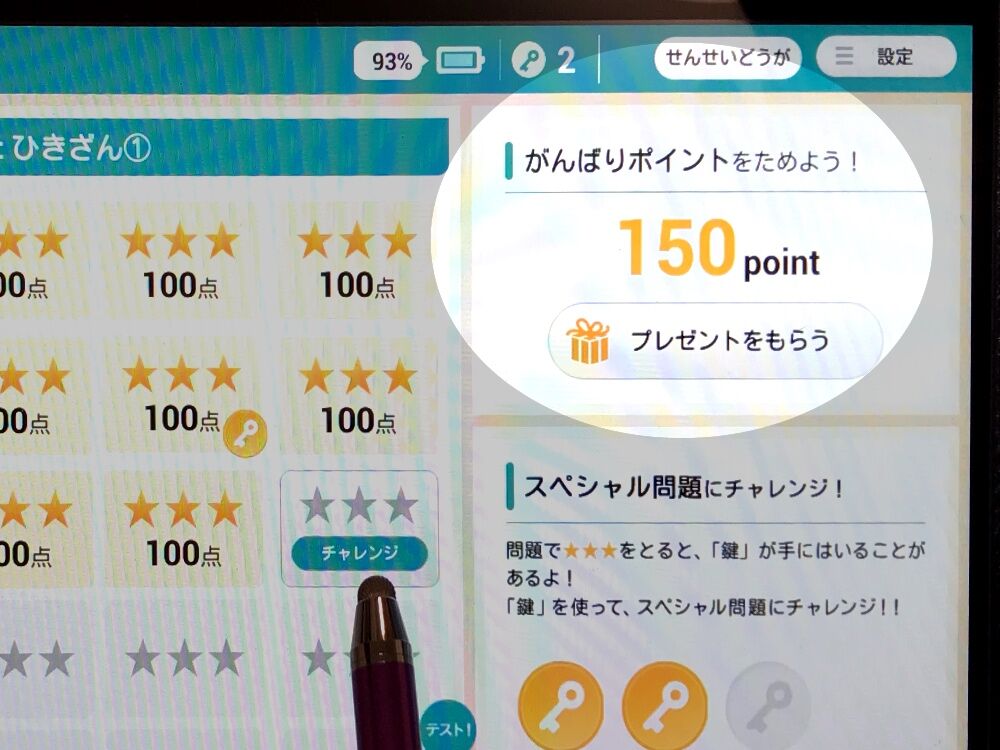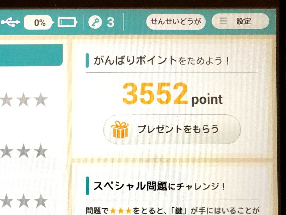 問題を解くと貯まる「がんばりポイント」ですが、これを貯めるといろんなプレゼントアイテムと交換できるんです。