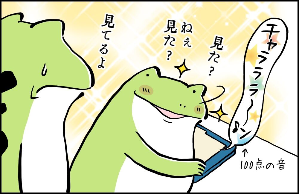 軽快な音楽と共に「100点」が!