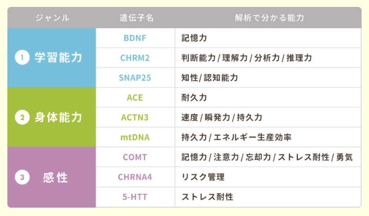 それぞれを司る遺伝子を解析することで、より詳細な能力が分かります。