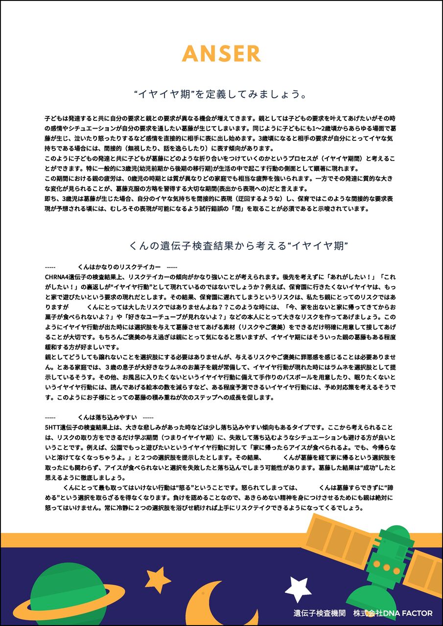 この度、遺伝子解析機関のDNAファクター様よりお声がけいただき、子供の能力遺伝子検査を受けました。
