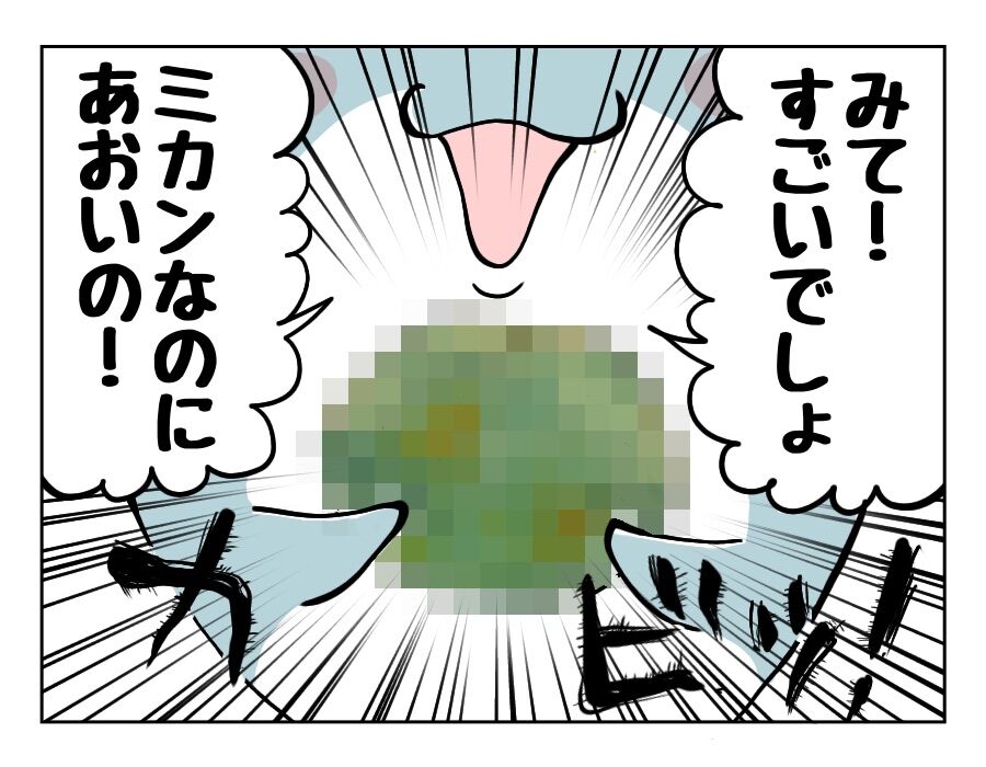 新種のミカンを発見してしまった5歳児 2023年01月28日 新種のミカンを発見してしまった5歳児気づいたときにはミカンを握りしめ、満面の笑みで駆け寄って来ていました。しかし次男、それは新種のミカンではないのだよ。ミカンは買ったばかりでも、いつのまにか青いのが出てくるよね…みかんあるある。 「子育て漫画」カテゴリの最新記事 タグ :#育児#コミックエッセイ < 前の記事次の記事 > コメント コメントフォーム 名前 コメント 記事の評価 リセット リセット 顔 星 情報を記憶 コメントを投稿する