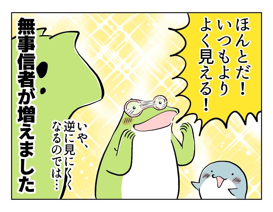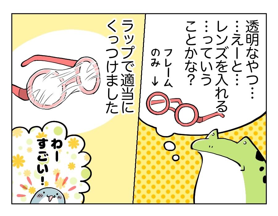 5歳児の布教活動、じわじわと信者を増やす。 2023年01月29日 5歳児の布教活動、じわじわと信者を増やす。ラップを巻けば巻くほど、視界は悪くかすんでいくはずが……なんということでしょう…!単純な長男も加わってますます盛り上がり、おもちゃメガネの信者はじわじわと増えていくのでした。 「子育て漫画」カテゴリの最新記事 タグ :#育児#コミックエッセイ < 前の記事次の記事 > コメント コメントフォーム 名前 コメント 記事の評価 リセット リセット 顔 星 情報を記憶 コメントを投稿する