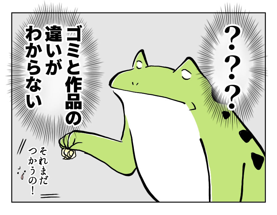 工作好きキッズとの生活① 〜それはゴミではない〜 2023年01月30日 工作好きキッズとの生活① 〜それはゴミではない〜大人から見ればゴミにしか見えなくても、子どもにとっては大事な大事な工作材料なのである。ふむ、まだまだ観察力が未熟ということなのか……。いや、でもセロハンテープの丸めたやつは、さすがに難題すぎて無理。 「子育て漫画」カテゴリの最新記事 タグ :#工作好きキッズ#育児#コミックエッセイ < 前の記事次の記事 > コメント コメントフォーム 名前 コメント 記事の評価 リセット リセット 顔 星 情報を記憶 コメントを投稿する