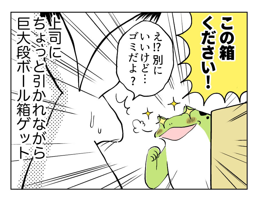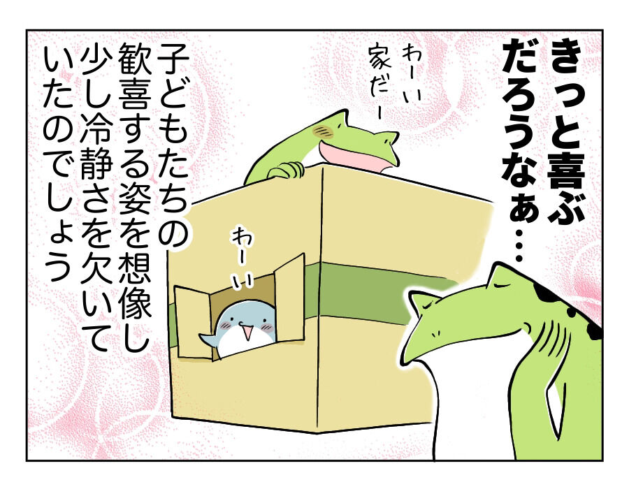 工作好きキッズとの生活④ 〜スーパーレアアイテムに冷静さを失った話〜 2023年01月31日 工作好きキッズとの生活④ 〜スーパーレアアイテムに冷静さを失った話〜大型の箱に反応しているあたり、親の私も大概だと思いますが「子どもたちの笑顔のためだもの!」どうにかこうにか車で持ち帰り、無事家で秘密基地になりましたとさ。 「子育て漫画」カテゴリの最新記事 タグ :#工作好きキッズ#コミックエッセイ < 前の記事次の記事 > コメント コメントフォーム 名前 コメント 記事の評価 リセット リセット 顔 星 情報を記憶 コメントを投稿する