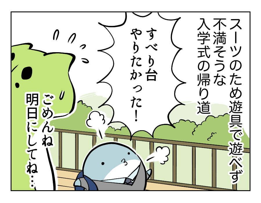服が汚れようが関係ないッ!入学式でも通常運転! 2023年04月25日 ★ちょうど1年前の話です(懐かしい…)今年、無事に2年生になりました。 晴れ着だろうが、なんだろうが、遊びたいときには遊びたい!服が汚れようが、破れようがオレには関係ないぜ! それが小学生男子。 そりゃあ「スーツちょっと高かったし、破れたら嫌だな」とか考 ... 続きを読む