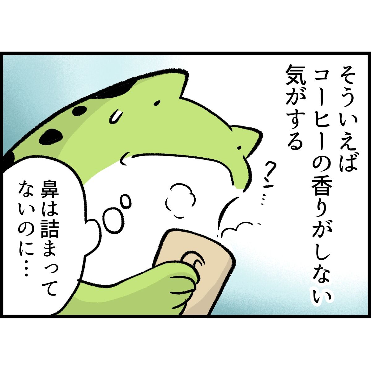 解熱し食欲が出始めた頃、朝ごはんに食べたキューちゃんの味と香りが全くなく、きゅうりの何かを食べている感覚でした。息子も同じで、匂わなくなったとハムスターの匂いやら柴犬の頭の匂いやらありとあらゆるものの匂い嗅いでました。