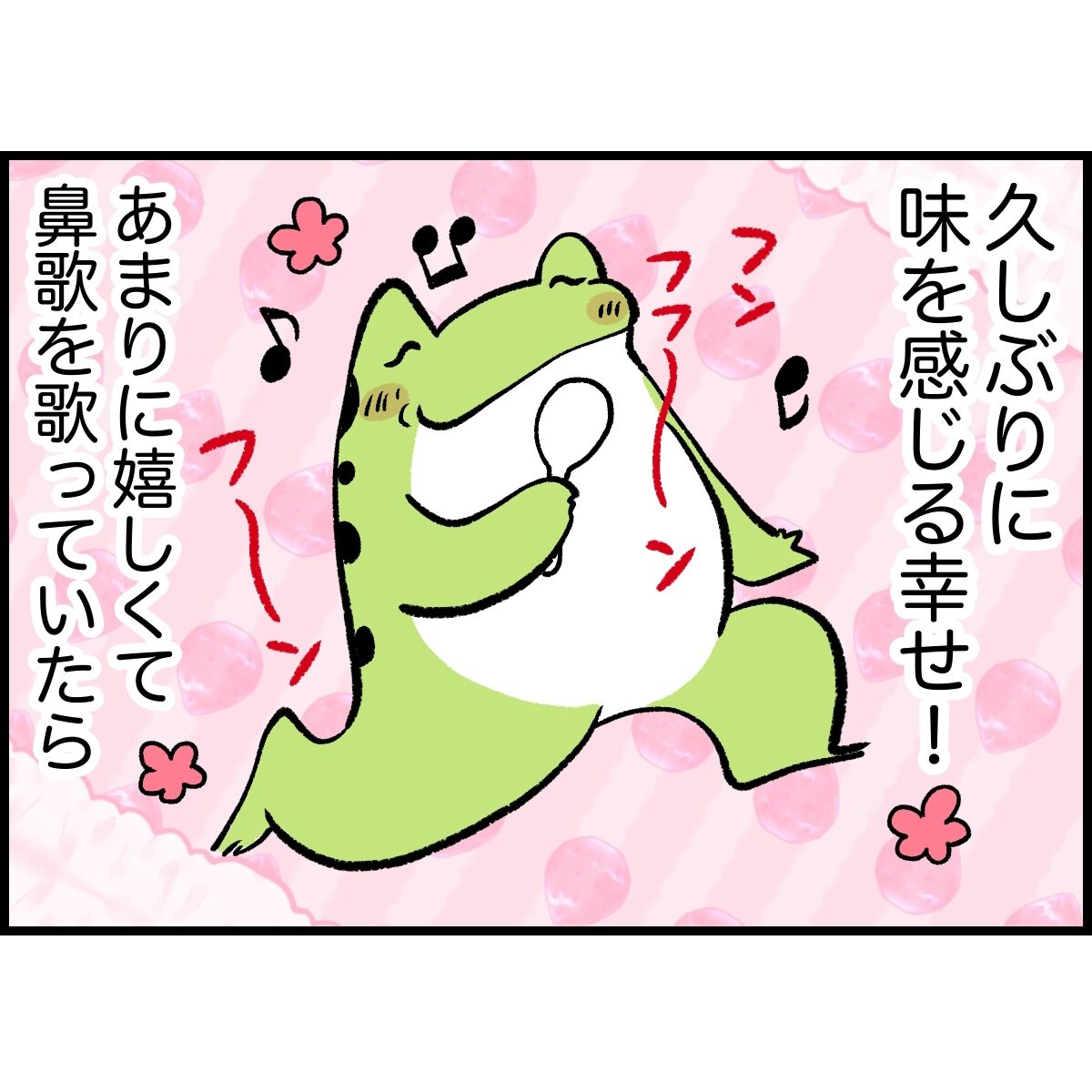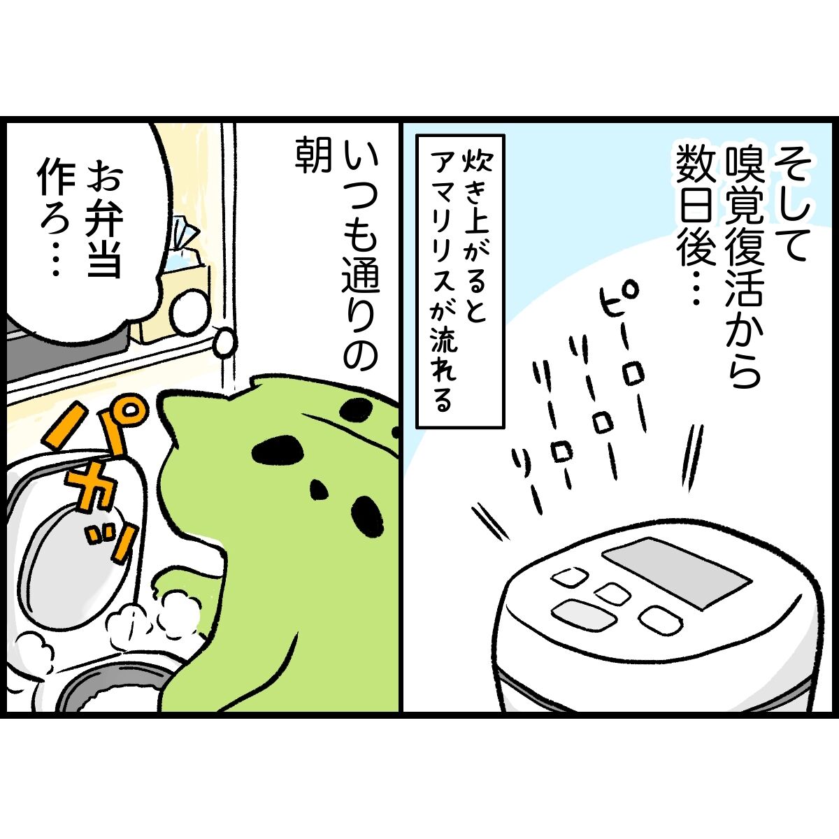 大好きなキューちゃんの味が分からず絶望した朝。それから2日程味と匂いが分からない日々。お気に入りの洗濯洗剤の匂いすら感じない悲しさはなかったです。朝起きて、洗濯する時に取り出した洗剤の匂いが分かった時、さらにキューちゃんの味wが分かった時は泣きそうになりましたw