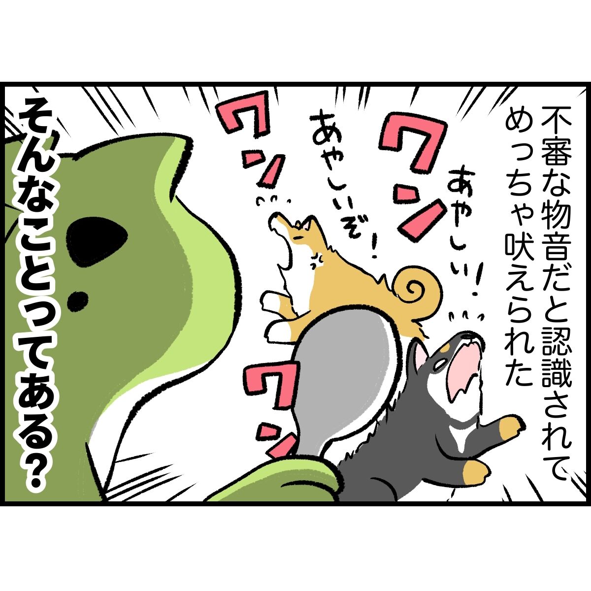犬にはかなり不審な物音に聞こえたらしい。